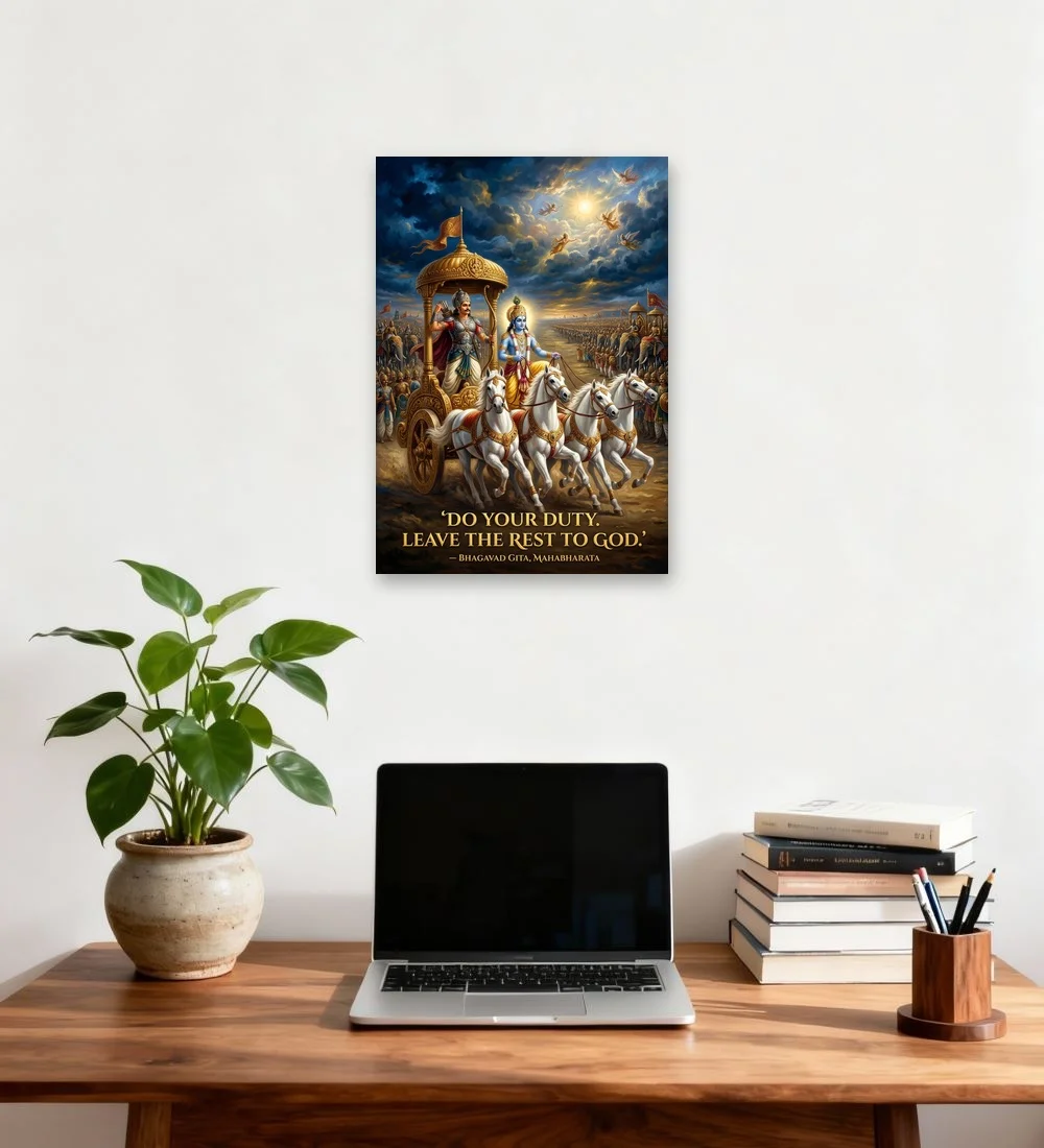 At its heart, the message is simple yet grounding: “Do your duty. Leave the rest to God.” This poster serves as a daily reminder to focus on your efforts without overthinking the outcome—something every student, creator, or professional can connect with.