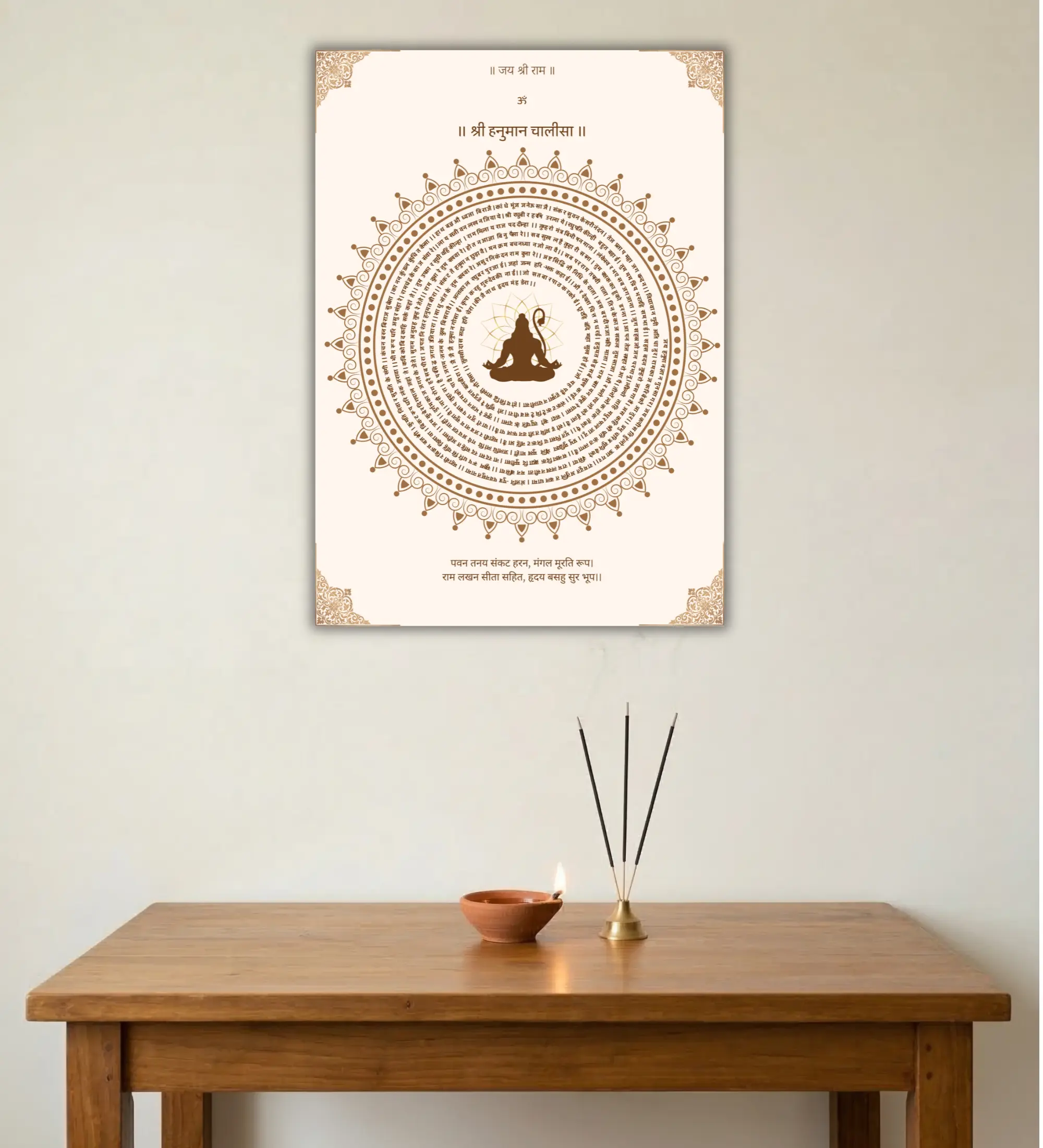 This poster is especially meaningful for those who begin their day with prayer or chanting, offering a visual presence of the Hanuman Chalisa that quietly fills the room with devotion.