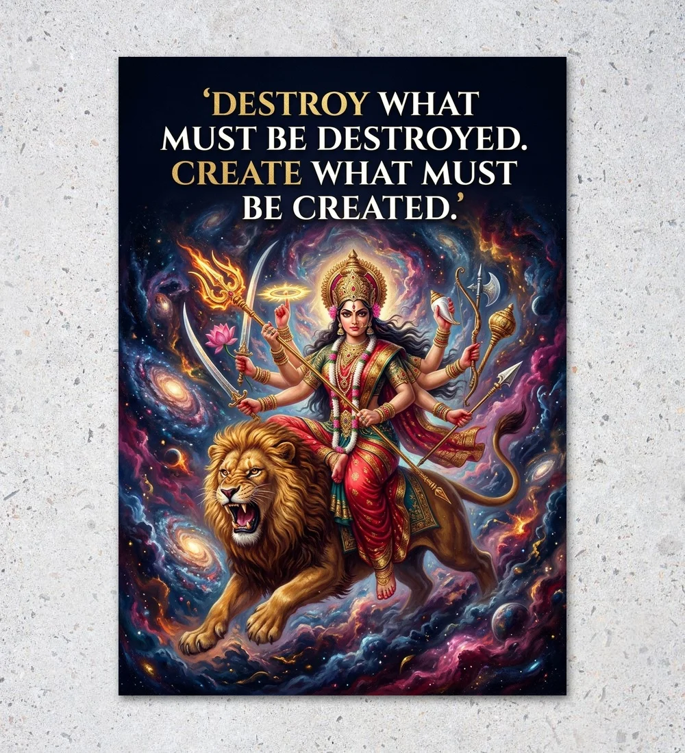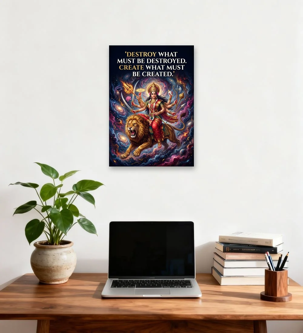 A bold and energetic poster inspired by divine durga power and transformation. This poster radiates strength, creation, and fearless change—perfect for spaces where you want to feel unstoppable and focused.