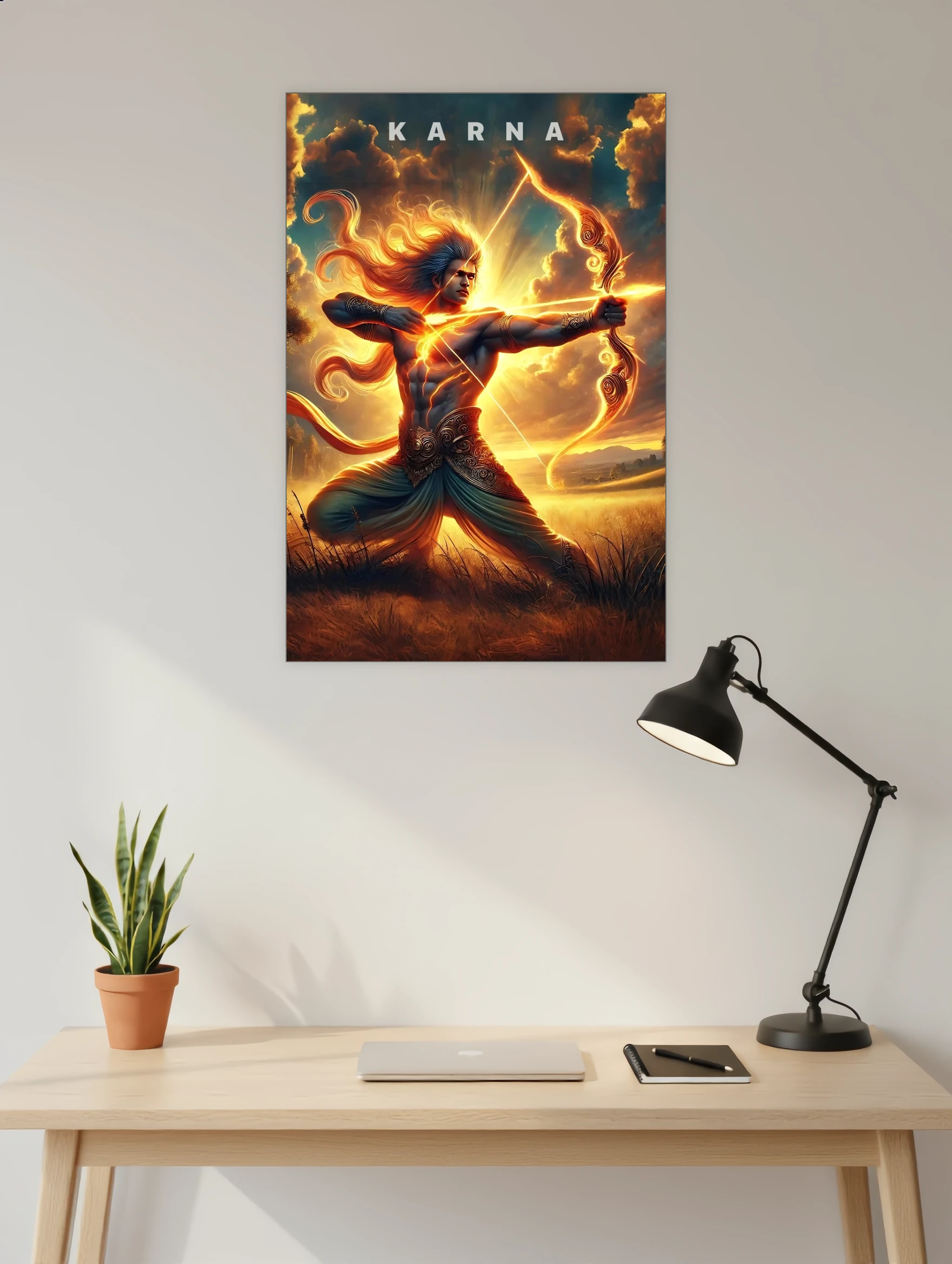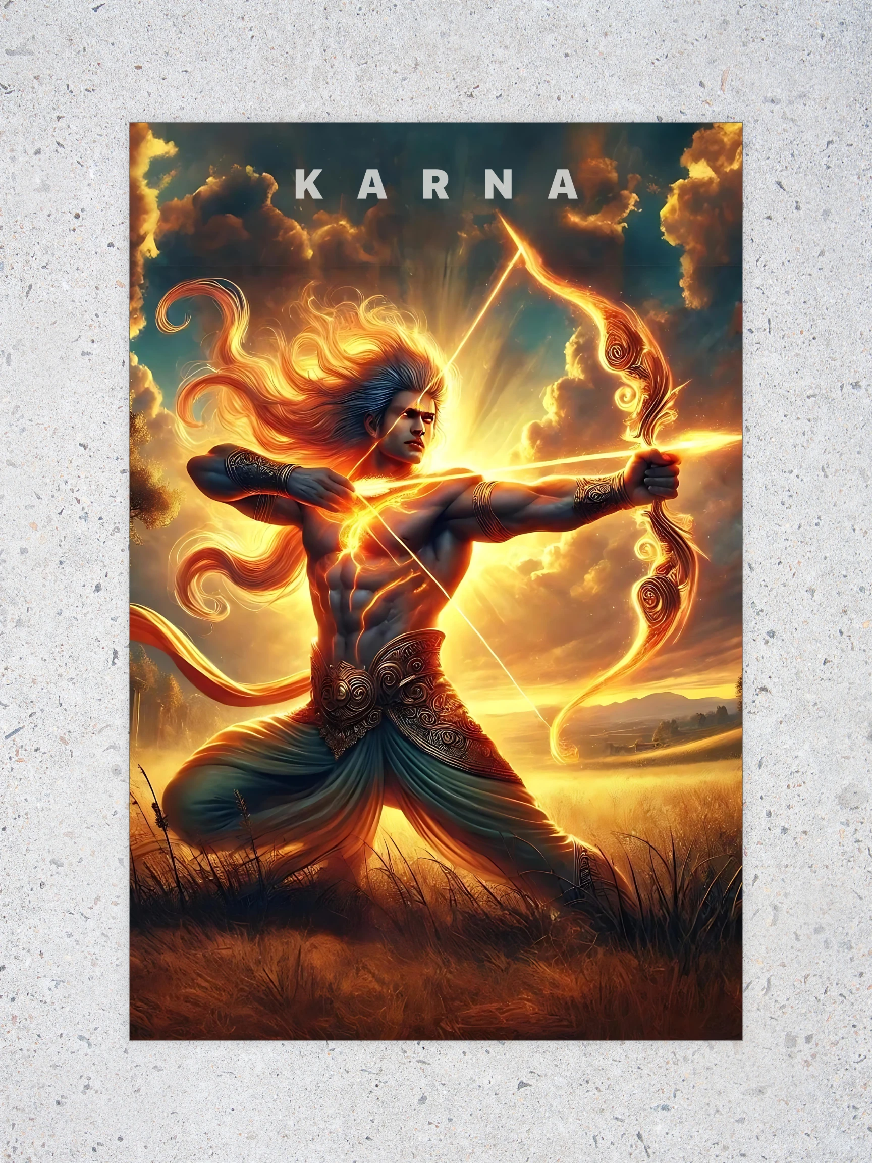Immerse yourself in the majestic world of Suryaputra Karn with this vibrant Kundli poster Featuring stunning K quality on – GSM Art Board the fade-proof print ensures long-lasting beauty Rolled up for safe delivery with adhesive stripes for easy hanging and OEKO-TEX Certified inks for safe vibrant colors